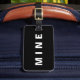 Funny black and red luggage tag with 'Mine' written on it