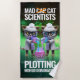 AI generated artwork of a couple of madcap, er, mad cat scientists dressed in lab coats and mixing mysterious liquids together in a jumbo-sized flask, accompanied by the headline, "Mad Cap Cat Scientists Plotting World Domination." (Which would be an insanely funny observation, except for the fact that they have already taken over the world). A great gift idea for cat lovers, animal lovers, and anyone with a sense of humor (PS. August 8 is World Cats Day!)