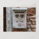 Funny mailbox photo with a cute smiling face added by the box holder. The mailbox is on a stone wall and has a heart with initials, eyebrows, nose, mouth, and tongue sticking out added as decorations.