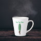 This Latte mug has a funny man wearing a brown suit with a big green pickle for a head with a surprised looking face. Customise your text at the top with the template.