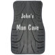 Funny novelty automotive car mats with graphic image of a car tire tread for a masculine design that will protect your car floors in style and fun text that says your man cave. Designed for guys for the front driver and passenger sides.