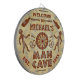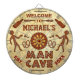Create your own humorous, custom "man cave" dartboard using this easy template. Made to look like the wall of a cave, the dartboard has primitive drawings of men throwing darts, a dart board, two baseball bats, two pretzels, a couple beer bottles and pool cues. The dartboard can be easily personalized with your name and the year your home bar or "man cave" hideout was established. The whole game board is in shades of brown, yellow and a little red. This is the ultimate man cave dartboard for your male sanctuary.