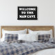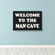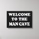 Welcome your buddies to your man cave with this wrapped canvas for your wall that reads, "welcome to the man cave" in bold white letters on a black background.