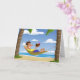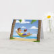 Celebrate a special milestone or send a sunny hello with this humorous tropical illustration. The design features a cheerful man lounging in a comfortable hammock strung between two palm trees on a pristine sandy beach. Holding a refreshing coconut cocktail with a pink umbrella, he embodies the ultimate relaxation vibe. This card is perfect for retirement announcements, birthday wishes, or summer party invitations. The bright blue ocean and fluffy white clouds create a serene paradise backdrop that will bring a smile to any recipient. Whether you are celebrating a well-deserved break or just sharing holiday cheer, this funny cartoon artwork captures the essence of exotic island life.