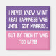 Funny Married Life Quotation. Message says: "I never knew what real happiness was until I got married... but by then it was too late!"