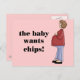 This funny maternity design says The Baby Wants Chips. Every pregnant mom has cravings; just blame it on the baby! Great gift for a friend or family member who is expecting.