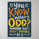 Make a statement while maintaining a laid-back and cool attitude with this "You Know What's Odd" typography design. Perfect for any time of the year and back to school. Packed with a just-right touch of personality, this Math Pun quote features a spirited message and artistic design that celebrates all things math.