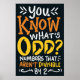 Make a statement while maintaining a laid-back and cool attitude with this "You Know What's Odd" typography design. Perfect for any time of the year and back to school. Packed with a just-right touch of personality, this Math Pun quote features a spirited message and artistic design that celebrates all things math.