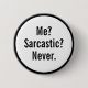 Funny Button with a meme "Me? Sarcastic? Never." Black and white. The best gift to a sarcastic friend.