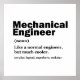 Do you love engineering science? If so, this is the illustration for you, especially if you are a Mechanical Engineer. There are plenty of engineer designs out there, but how many of them make sense? That's what makes this graphic design so great. You'll feel the love and passion that went into designing this Mechanical Engineer graphic.