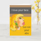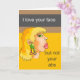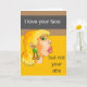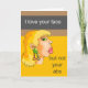 This funny missing you greeting card is designed to shock the husband, boyfriend, or whoever with the statement "I love your face, but not your abs." The inside turns things around with by adding letters to the word "abs" and making it "absence." What a cute, slick, loving way to bring a smile to one's military husband, military wife, or any person who is separated from someone they love.