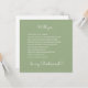 Pop the question to your bridesmaids with a cute and personalized proposal card. This design features modern script for the question "Will you be my bridesmaid?" and funny questions to ask in trendy sage green. Customize this invitation card with your own questions if you like to make it uniquely yours! On the back there is room for your own personal message. A great addition to any bridesmaid proposal box. Matching wine labels are available in my shop!