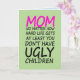Mom no matter how hard life gets at least you don't have ugly children. Funny card For people who need a little laugh, people who are sick and lying in bed, or people hospitalized.