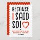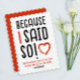 Celebrate Mother's Day with this bold card featuring "Because I Said So!" in striking red and black typography on a pristine white background, radiating maternal authority and love. A minimalist painted red heart adds warmth and affection. Personalize the text and signature for a heartfelt touch. Perfect for empowered mothers and grandmothers.