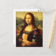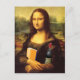 Funny altered Mona Lisa carrying a bottle of wine and a book. Book lovers, wine lovers, and book club members will understand that she has a lot to smile about. Add your own text on the back if you want to use this for a group mailing or event.