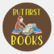 Funny Monkey Reading Book But First Books Classic Round Sticker