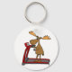 Funny Moose Exercising on Treadmill Cartoon Keychain