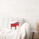 Merry Kiss Moose funny red and white Christmas holiday design featuring a whimsical moose or elk with a bunch of mistletoe tied to his antler, hoping for a cheeky kiss.