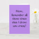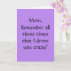A Mother's Day card that's perfect for all of us 'grown up' sons and daughters to send to the Mom who put up with us during all those 'difficult' years. We donate a portion of EVERY sale to The Breast Cancer Research Foundation.