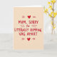 This card features a multi-line message in cherry-red letters centered on a soft, creamy beige background, giving it a cozy, close-to-the-heart look ❤️. The thick, sans-serif lettering has a slightly uneven, drawn-by-hand feel that reads like a note passed between two people who know each other well. The words sit in the middle with generous spacing, letting the red text take up most of the visual attention without feeling harsh. Small red doodles frame the message like affectionate teasing, including tiny hearts above and below that hint at a flirty grin between friends or partners 🌼. Simple equal-sign marks and wavy lines add a casual rhythm around the lines of text, as if someone couldn’t resist decorating the margins. A star-like asterisk and a small cross symbol appear as extra accents, keeping the layout lively while still focused on the message. All elements stay in the same cherry-red tone, and the background remains a smooth, flat cream with no shading or texture.