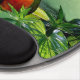 The plastic backing is nice and sturdy. The grippy pads underneath keep the mouse pad where I put it on my table. The pad the mouse sits on is cut well to fit the backing. The wrist pad is perfectly soft, supportive, and thick. I'm left-handed, and this mouse pad works just as well for me as it does for my right-handed friends. I'm the designer of HippieClecticHope products. I'm blown away by how well my intricate fractals turn out on the tangible items in the Zazzle Marketplace. This particular mouse pad ***appears*** like a 3D object... A mathematically-engineered rainbow black opal, inlaid under transparent fabric...