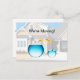 Funny moving announcement postcard template in a humorous design with image of fish jumping from one home to another and image of a residential home in the background you can use as shown or erase the house graphic with to and from template on the writing side you can use to personalize your announcement or remove those and hand write your own to and from.