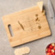 This "Murder Vegetables" cutting board features lettering with a custom vegetables.