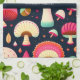 Funny mushroom Pink Blue Isometric Pattern Kitchen Towel