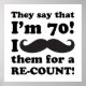 A hilarious birthday gag gift idea that says 'They say that I'm 70, I mustache them for a re-count!'