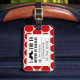 STYLISH, FUNNY, RETRO MUSTACHE LUGGAGE TAG. BLACK MUSTACHE WITH RED AND WHITE POLKA DOT PATTERN. "I MUSTACHE YOU TO RETURN MY LUGGAGE". MOVIEFUN© A fun gift for her. For other colours of mustache or background polka dots pattern please contact designer.
