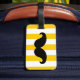 FUNNY MUSTACHE LUGGAGE TAG. BLACK MUSTACHE WITH BOLD MODERN YELLOW AND WHITE STRIPES PATTERN. "I MUSTACHE YOU TO RETURN MY LUGGAGE". MOVIEFUN© For other colors of mustache or background stripes pattern please contact store.