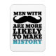 Men with mustache are more likely to make history. Funny mustache quote magnet for quirky decoration.