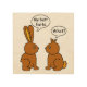 My Butt Hurts! - What? Two funny chocolate bunnies with each a bite taken off them. One says his butt hurts, the other can't hear him because his ears are chewed off. Funny saying for bunny rabbit lovers, and the Easter holidays. Cute funny bunnies cartoon illustration.