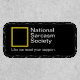 Black background with gold rectangle and white "National Sarcasm Society - like we need your support" text. Funny iron on patch design that's sure to get a snicker or snort!