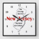 Funny New Jersey Saying: The Strong Survive--The Rest Get Eaten clock features a black outlined map of New Jersey with large red identifying text across the map that says New Jersey. Smaller text inside the map that says, "The Strong Survive--The Rest Get Eaten." The NJ map is bordered by a printed black square frame to match the clock. Anyone who's spent time in The Garden State can relate to the humor in this funny New jersey clock.