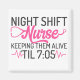Funny magnet for ANY night shift nurse! With the words: "Night shift nurse, keeping them alive til 7:05.