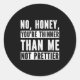 Funny No Honey You're Thinner Than Me Not Prettier Classic Round Sticker