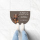 "No need to knock twice, We have a Dachshund" says this cute door mat. The text is in white at the right side, while a picture of an adorable Doxie is at the left. Everything is placed on a darker background.