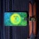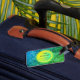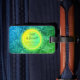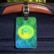 Personalizable luggage tag with an magical shining green blue yellow pattern.