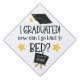 Fun typography I Graduated Now Can I Go back to Bed? for graduation day with mortar board hat, blackboard and star motifs on white. Easily personalise the year.