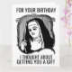 FUNNY NUN BIRTHDAY CARD. FUNNY SENTIMENT INSIDE.
