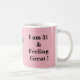 This is a funny coffee mug about nurses. Coffee mug say "Who says being a nurse is stressful. I am 31 and feeling Great.