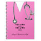 Creative nurse notebook art featuring pink hospital scrubs, stethoscope, and a Swiss Army knife. To personalize, edit text to add name and year.