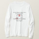 I love this shirt. I had written to the artist asking her if this picture was available on a shirt, and she wrote me back telling me where I could find the shirt. These shirts can be custom made to have a different saying. I loved this saying and went with it. The artist wrote me back later to tell me that she had seen my order go through. How's that for service? Pretty special. It's just as displayed. Perfect!