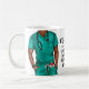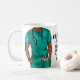This fabulous coffee mug features a male nurse in green scrubs with text image "Nurse in Progress Please Wait" and personalized with your name and initials. Makes a great gift.