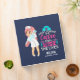 A personalized binder with a humorous saying: First i drink the coffee, then I save the lives. Perfect for nurses. Featuring an illustration of a female nurse wearing a cute old fashioned nursing hat and carrying a giant hypodermic needle. The background is dark blue.