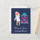 Nurses Day postcard with a humorous saying: First i drink the coffee, then I save the lives. Perfect for nurse appreciation. Featuring an illustration of a female nurse wearing a cute old fashioned nursing hat and carrying a giant hypodermic needle. Dark blue background.