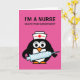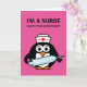 Funny nursing greeting card | cute penguin nurse with big syringe needle. Humorous quote for super RN nurse, registered nurse, LPN, nursing school graduate, nurses week / day etc. Pink or custom background. Also avilable as enormous oversized card. Fun for birthday party, thank you, graduation etc.