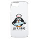 Funny nursing iPhone 11 case | cute penguin nurse. Custom caregiver or RN Registered Nurse iPhone cover with animal cartoon holding a syringe needle. Personalized colors and text. Cute gift for nurse week or nursing school graduation.