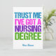 Trust me, I've got a nursing degree. A cute and funny nursing school graduation card for a RN or LPN or graduated to become a professional nurse. Pretty teal, pink, purple and green font for a cool modern look.